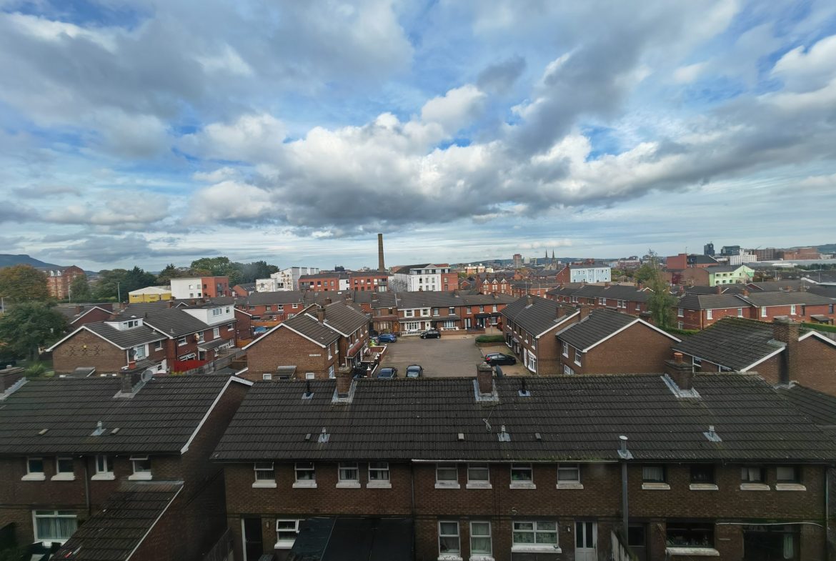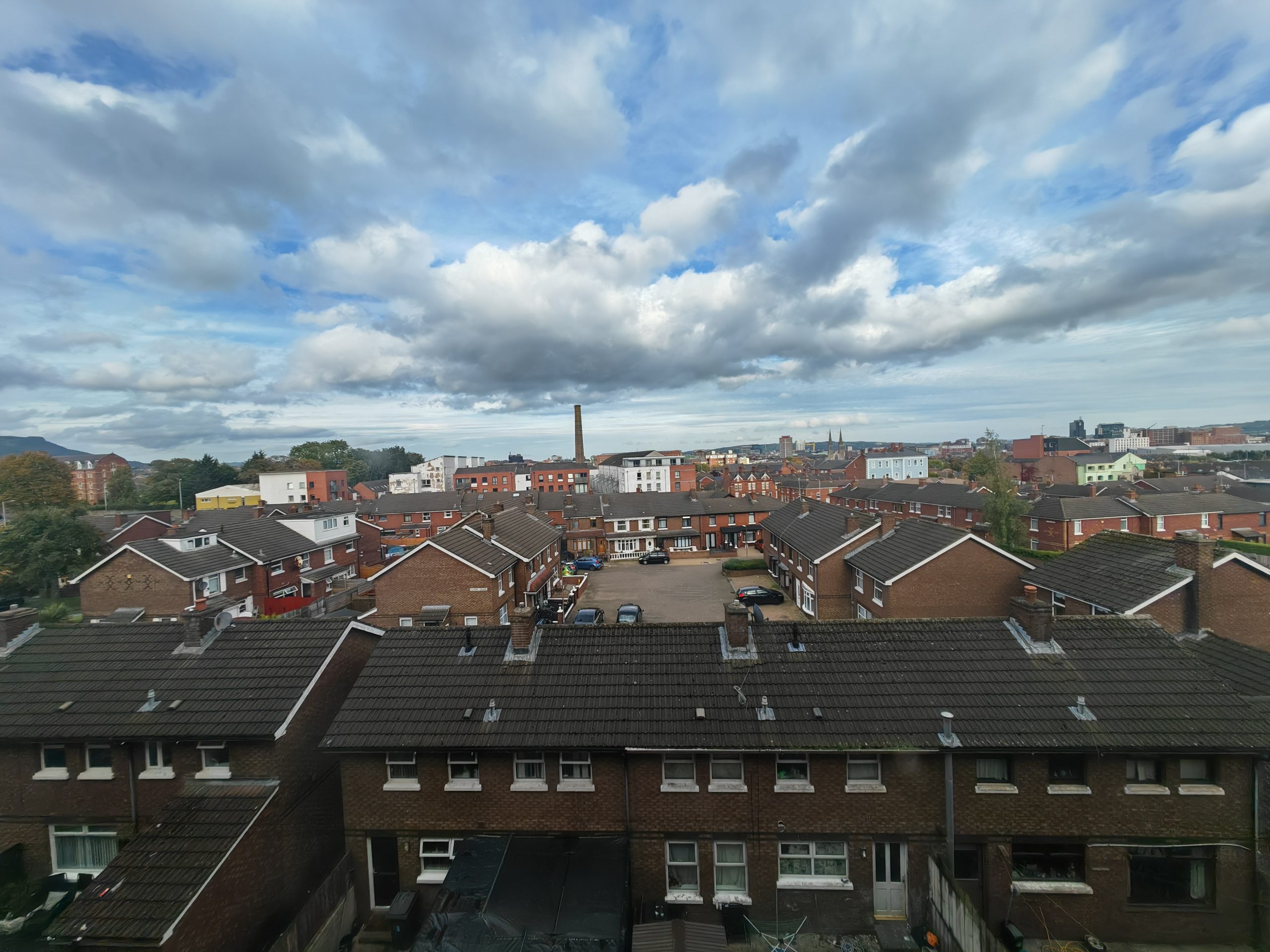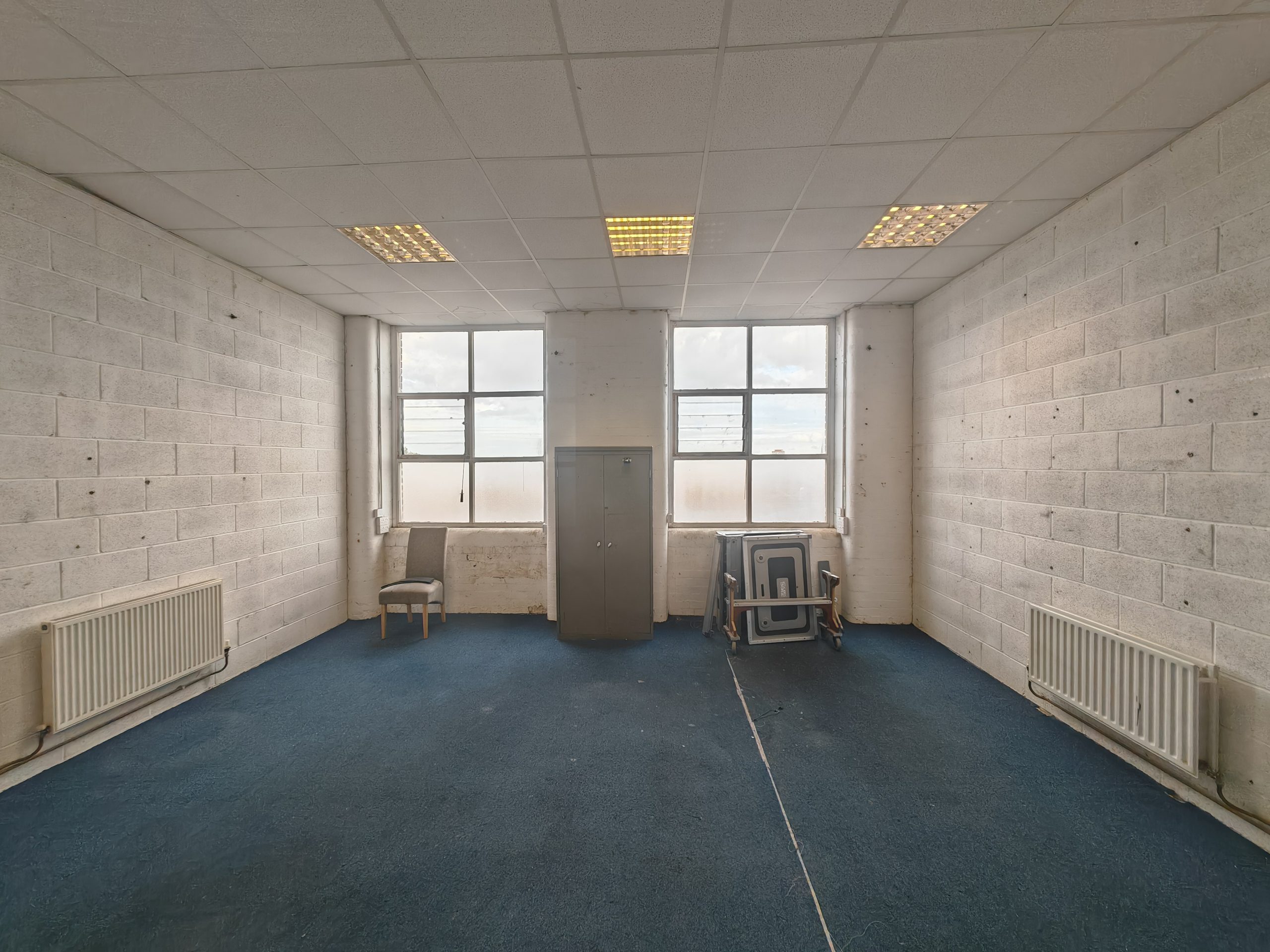 1303 Blackstaff Mill, Springfield Road, Belfast BT12 7AE. – Great bright office with heating and 2 very large double glazed mill windows. This great space at Blackstaff Mill, Springfield Road, Belfast BT12 7AE is ideal for Office/ Studio / Workshop. A great 2nd Floor 550 sq ft Studio with shared access to shared kitchenette and is served by 2 lifts, large original stairs and new stair/lift shaft (suitable for Disability access) stairs with 2 modern Lifts. The floor has amble Toilets (Male, Female and Disabled). A great large space with lovely timber floor throughout and 2 large mill windows and a internal office (153 sq ft) with full length glazed wall for shared light from the main area. The Blackstaff Mill is only 1 mile *20 min walk) from City Hall. Good facilities with free on site parking and 3 modern lifts. Very Close to Westlink, M1, M2, M3 & M5 so good routes to City Centre, Dublin, Holywood etc. How do you get the the Blackstaff?! It is a mile from City Hall. If at the rear of City Hall on Donegall Street, continue along Howard Street; continue along Grosvenor Road. Cross over the Falls Road onto the Springfield Road. Blackstaff Mill is 300 yards up on the right. Turn in at Solo Petrol Station/Eurospar supermarket and behind you will find tall red brick chimney and 5 storey Mill Building. Turn right and continue along front until you find a large car park and we are overlooking it on Floor 3.