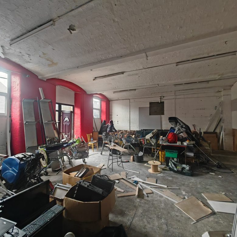 It is a mile from City Hall. If at the rear of City Hall on Donegall Street, continue along Howard Street; continue along Grosvenor Road. Cross over the Falls Road onto the Springfield Road. Blackstaff Mill is 300 yards up on the right. Turn in at Solo Petrol Station/Eurospar supermarket and behind you will find tall red brick chimney and 5 storey Mill Building. Turn right and continue along front until you find a large car park and we are overlooking it on Floor 3.