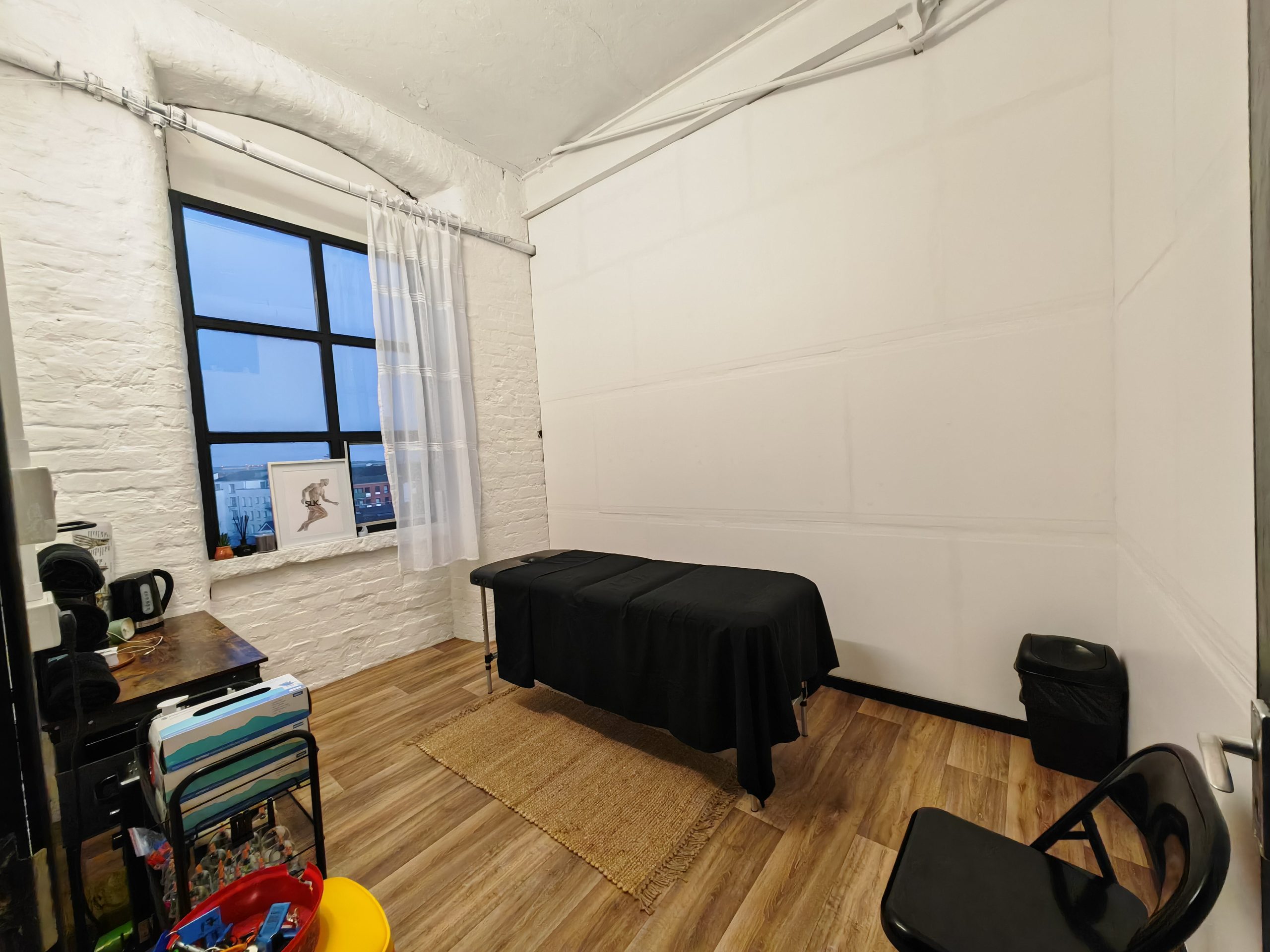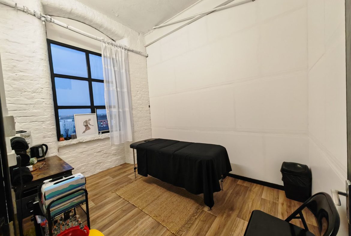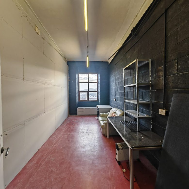 1725 Blackstaff Mill, Belfast BT12 7AE 110 sq ft, A large timber window with double glazing, tastefully painted in white with new flooring. There is own door from corridor and the electricity is read through own meter. Office / Studio / Workshop.